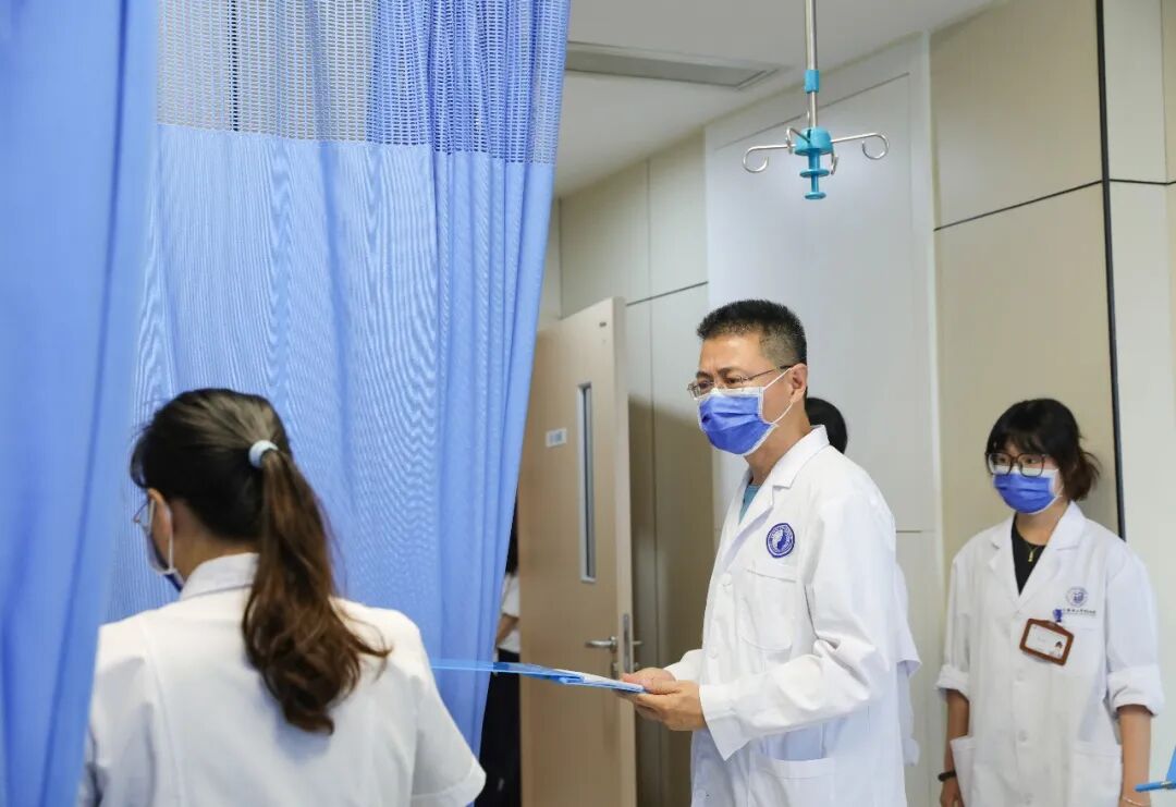 2025年7月,安徽中医药大学总支副主委汪泓正带领青年医生查房。