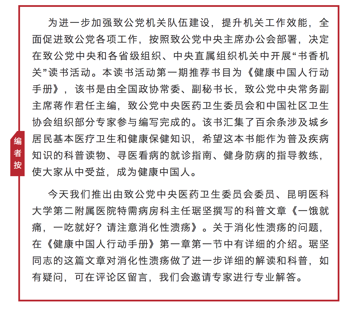 书香机关|琚坚:一饿就痛,一吃就好?请注意消化性溃疡