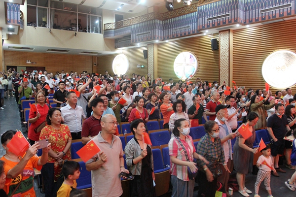 文艺汇演在现场全体人员合唱《没有共产党就没有新中国》中落下帷幕,大家激动地挥舞着手中的中国共产党党旗和中华人民共和国国旗,表达着对中国共产党和祖国的无限热爱之情,倍感兴奋激动。