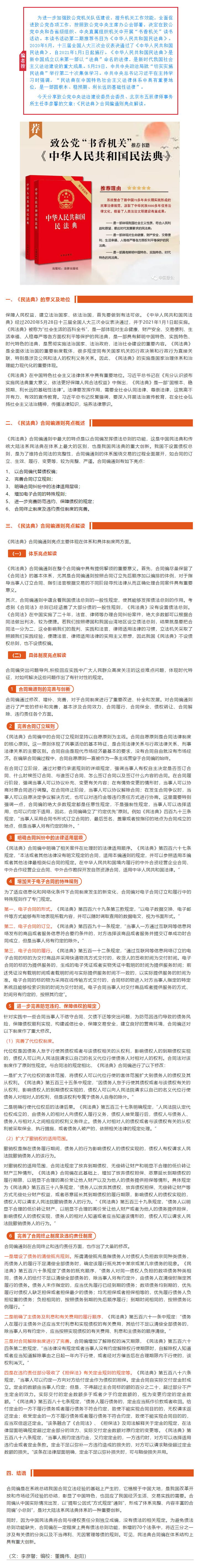 书香机关|李彦馨:《民法典》合同编通则亮点解读