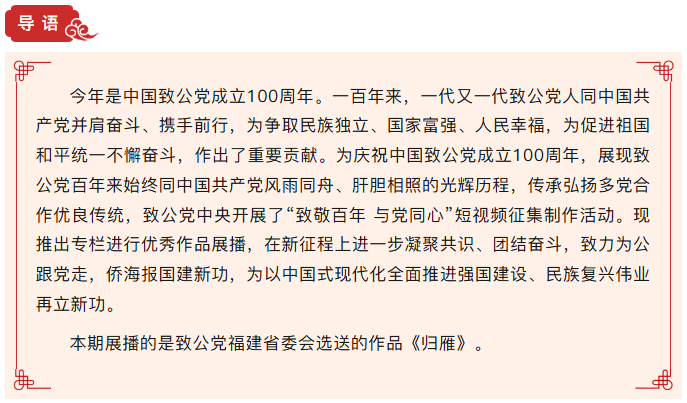 “致敬百年 与党同心——庆祝中国致公党成立100周年”优秀短视频作品展播(十)