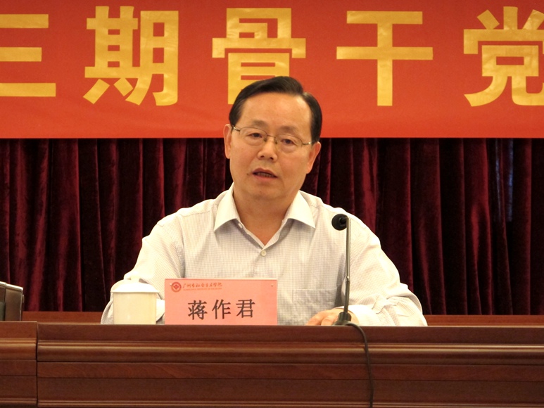 11月14日,致公党第三期骨干党员培训班在广州市社会主义学院举办。全国政协常委、副秘书长,致公党中央常务副主席蒋作君出席开班式并作动员讲话。广东省政协副主席、致公党广东省委主委黄武,中共广东省委统战部常务副部长郭汉毅,广州市社会主义学院院长蔡国萱出席开班式并致辞。开班式由致公党中央组织部部长李刚主持。