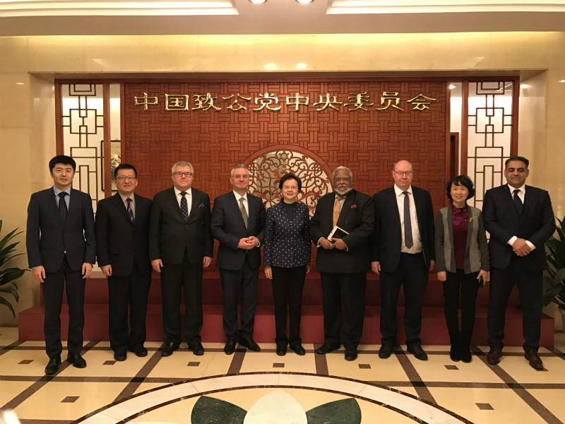 欧洲议会欧中友好小组是欧洲议会内一支重要友华力量,于2006年成立,致力于推动欧盟与中国在教育、发展援助、人权、环保、商贸、交通、农业等领域的交往与合作,为欧洲议会与中国官方交往发挥着补充和配合的作用。此次代表团是受全国友协邀请来华访问的,在京期间,除拜访致公党中央外,还走访了全国人大、外交部、中联部等单位。联络部部长许怡,我驻欧盟使团公使衔参赞熊伟等参加了会见活动。