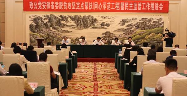 5月15日,致公党安徽省委会召开脱贫攻坚定点帮扶(同心示范工程)暨民主监督工作会议。全国人大常委会委员、省人大常委会副主任,省委会主委谢广祥出席会议并讲话。省委会副主委吴春梅、武琼宇、陶仪声、朱新中,秘书长周毅及省属组织主委、专职或分管副主委,机关处以上干部约80人参加会议。