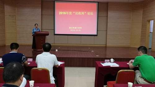 10月16日,致公党厦门市委举办2016年度“议政周”论坛。致公党厦门市委专职副主委郑幸红、秘书长李瑞盛以及各基层组织主委、参政议政委员近80人参加活动。活动由致公党市委宣传调研处副处长陈木金主持。