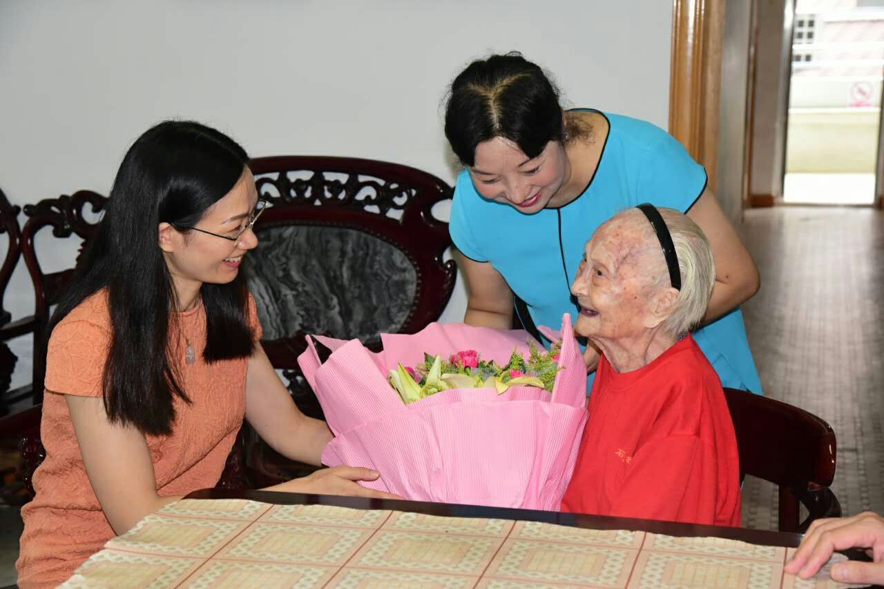 8月25日,东莞市委会联同市社保局到石龙、石碣为两位自梳女“老寿星”庆祝一百岁生日。省人大代表、东莞市委会副主委阮雪玲参加了本次活动。