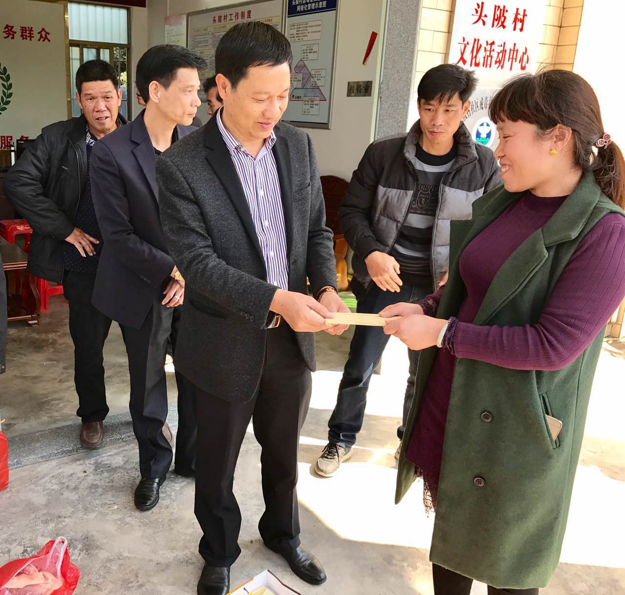 1月25日,致公党广东省委会副主委、汕尾市委会主委、汕尾市政协副主席李秉记,汕尾市委会专职副主委刘耿文,市委会社会服务委员会副主任邹永强深入到挂钩帮扶的内湖镇头陂村开展慰问活动。