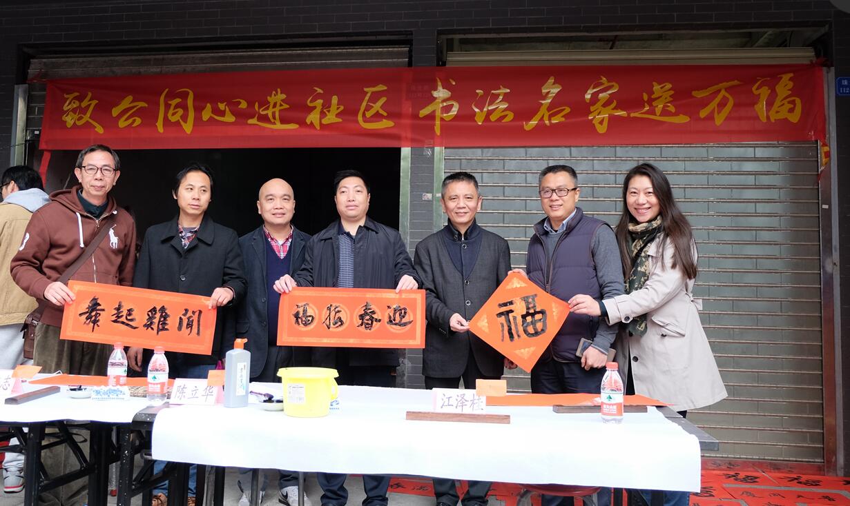 1月17日,致公党广州市委社会服务委员会、广州致公书画院、致公党越秀区基层委员会联合在越秀区珠光街仰忠社区文化广场举办“致公同心进社区,书法名家送万福”活动,组织广州致公书画院的书法名家,现场挥毫泼墨,书写“福”字春联和四字祝福条幅送给社区居民。