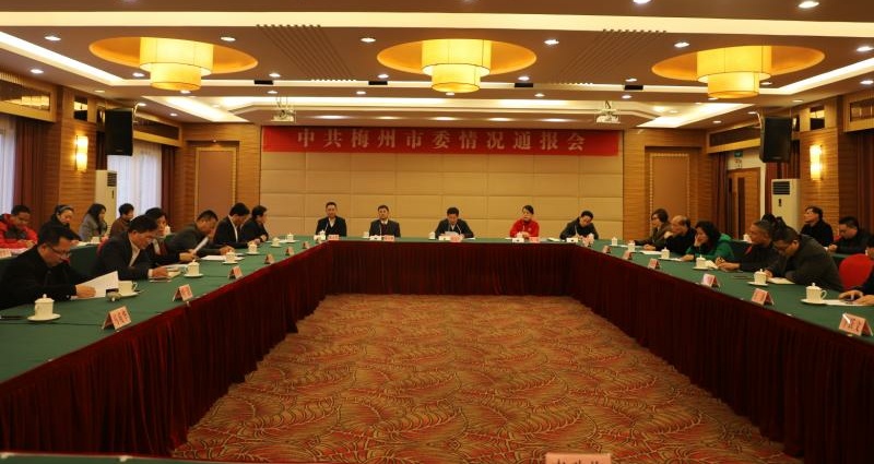 1月9日上午,中共梅州市委召开情况通报会,市委常委、统战部部长张文广主持会议并通报市委七届四次全会精神。市各民主党派、市工商联、无党派代表人士参加会议。梅州市副市长、致公党市委会主委张晨及市委会副主委、秘书长参加了此次会议。