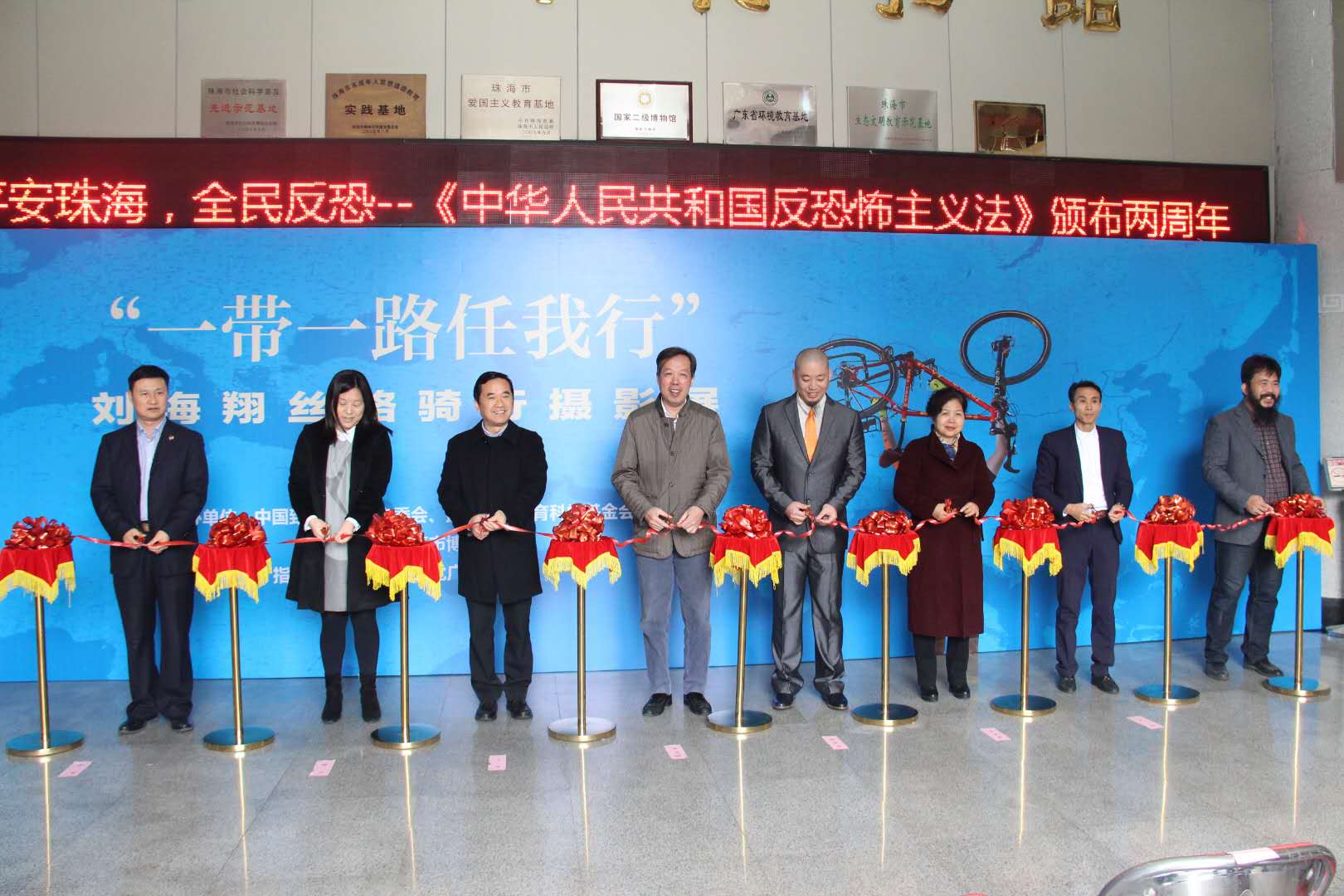 1月10日至17日,经省委会文体委积极协调,“一带一路任我行”刘海翔丝路骑行摄影展珠海站在珠海市博物馆举行揭幕仪式。致公党珠海市委会主委吕简承,副主委邹镭、杨政参加了活动。市人大、市政协、市侨联等相关单位领导以及媒体记者参加了开展仪式。