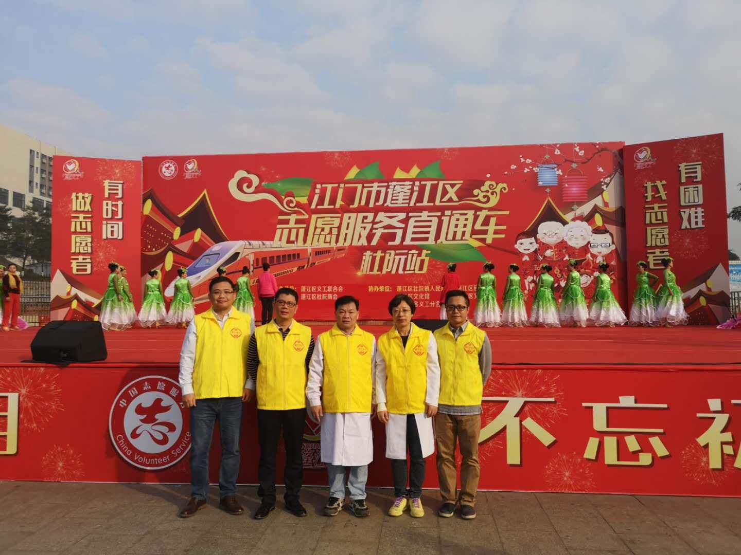 1月20日上午,致公党江门市委会社会服务专委会组队参加江门市蓬江区志愿服务直通车“便民利民暖心下基层”活动,该活动在江门市蓬江区杜阮镇全民健身广场举行,由江门市蓬江区义工联合会组织,活动吸引了上万人次参加。