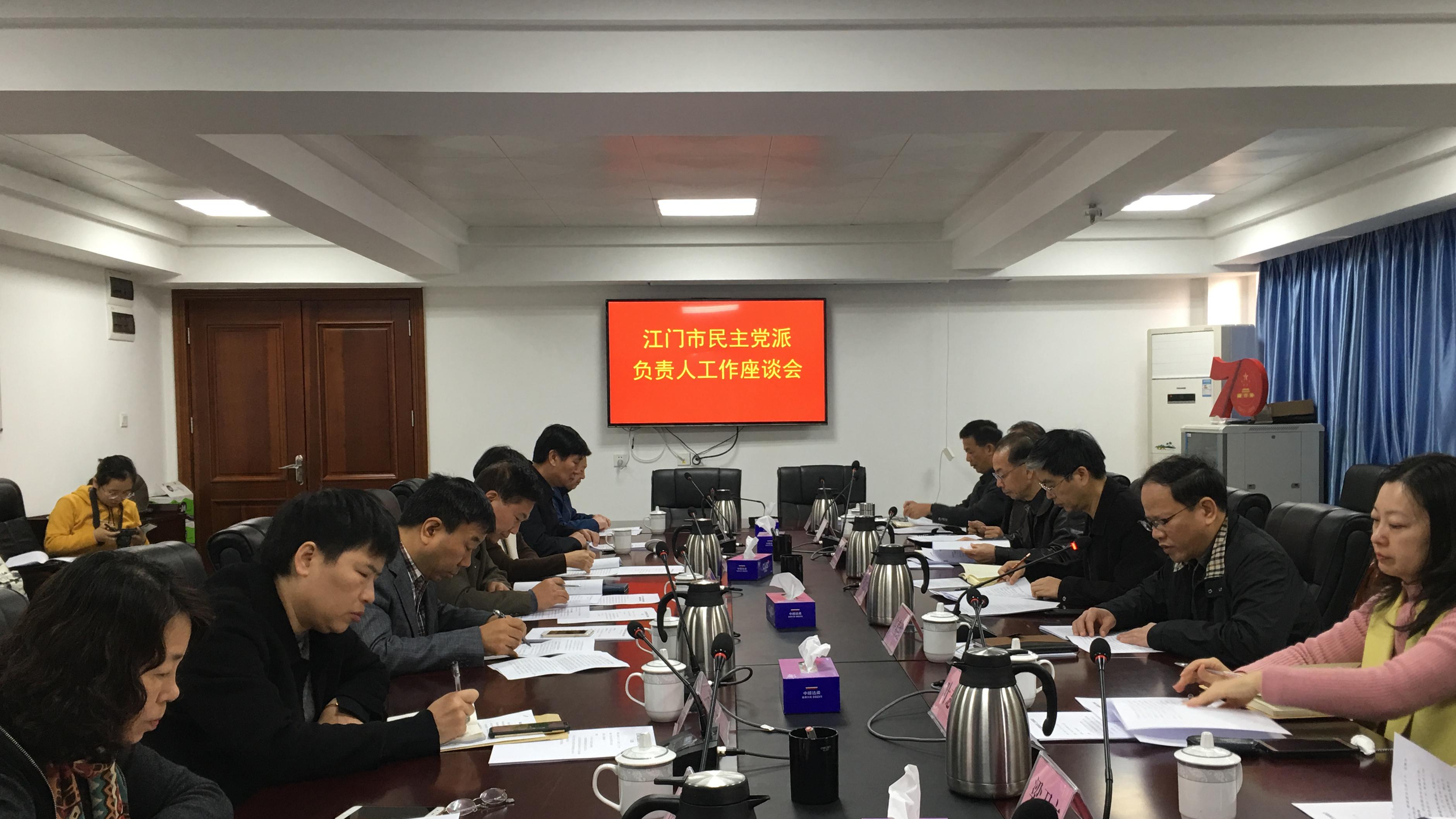 12月4日上午,中共江门市委召开各民主党派负责人座谈会”。中共江门市委常委、统战部部长利为民及统战部有关领导,市各民主党派负责人参加了座谈会。致公党江门市委会主委胡念芳、专职副主委马群林、秘书长张芳参加了会议。座谈会由市统战部常务副部长庄春维主持。