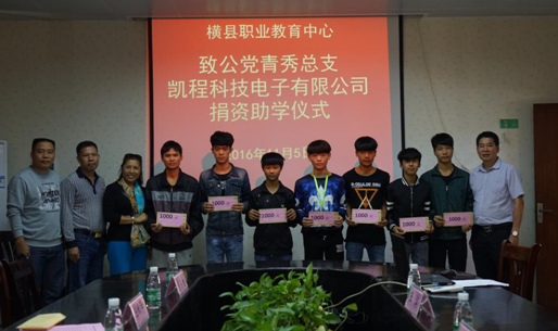 活动中,市委会党员骨干与职教中心的教师和受助学子进行座谈交流,了解学校办学和贫困学生学习生活状况,向职教中心介绍了致公党南宁市委会的有关情况,同时宣传了统一战线和民主党派的知识。致公党青秀总支副主委、南宁市凯程科技电子有限公司总经理庄银锋为横县职业教育中心25名品学兼优的贫困学生捐助25000元助学金,并勉励学生们把暂时的贫困化为精神动力,把感激之情化为成才之志、发奋之源,以优异的成绩回报学校、社会,报答父母和社会对他们的关爱。