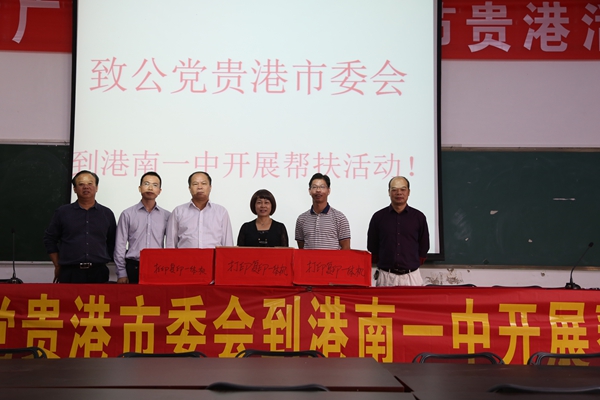 2017年10月25日,致公党贵港市委会机关干部在李少兰副主委的带领下到贵港市港南区港南一中开展帮扶活动。致公党贵港市委会捐赠港南一中总价值为5000元的3台激光复印打印一体机。