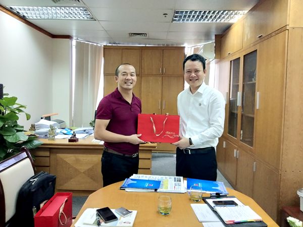 粟宥朝(左)与越南工商总会(VCCI)办公室主任 Pham Dinh Vu范庭武(右)合影