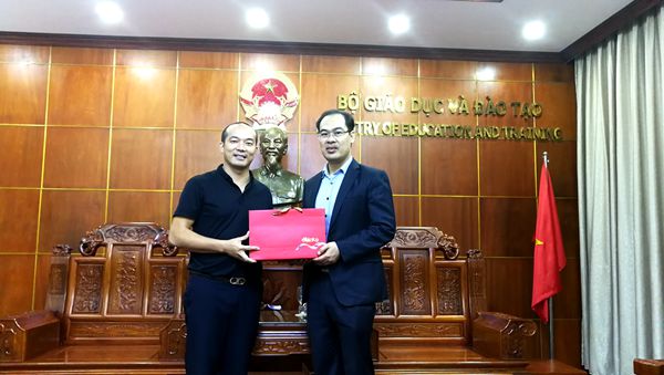 粟宥朝(左)与越南教育部国际关系司副司长 Dr.Nguyen Hai Thanh阮海青(右)合影