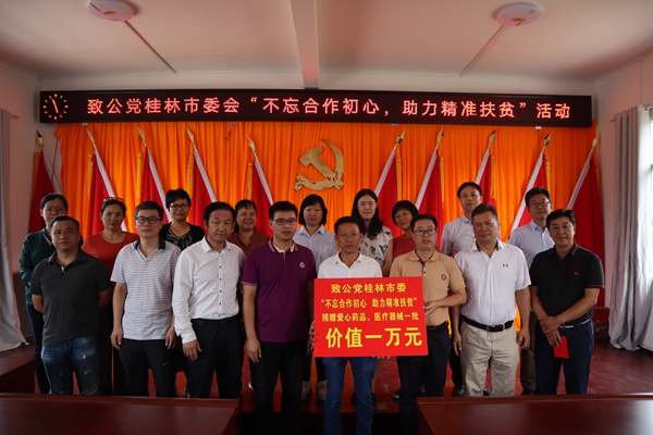 为全面贯彻落实习近平总书记关于精准扶贫、精准脱贫系列讲话精神,扎实推进市委会“不忘合作初心,继续携手前进”主题教育活动,推动学习贯彻往深里走、往心里走、往实里走。9月19日上午,致公党桂林市委会主委谢永功带领20多名致公党党员,赴灌阳县文市镇深度贫困村陈家坪村开展“不忘合作初心助力精准扶贫”社会服务活动,进行了产业发展扶助资金捐赠、一对一帮扶慰问、法制咨询和送医送药义诊等系列活动。