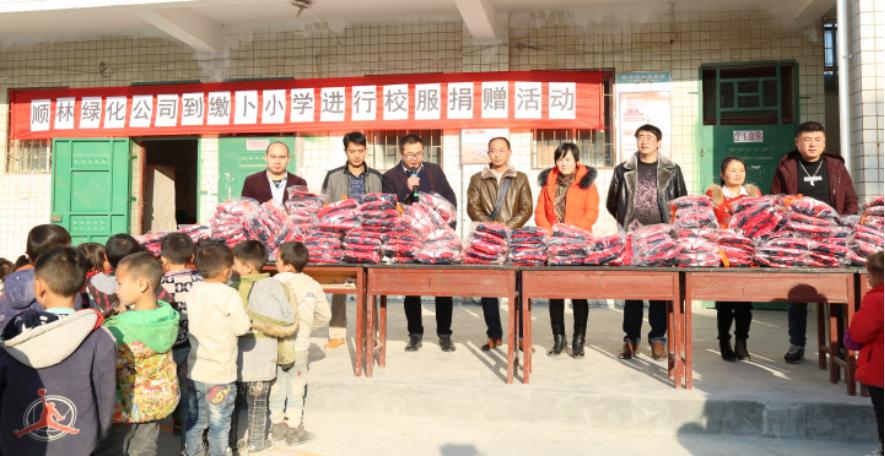 爱心捐赠活动分两天进行。捐赠仪式上,安顺鲁艺公司为金龙村打表小学捐赠校服130套,紫云顺林绿化公司为缴卜村缴卜小学捐赠校服190套,价值人民币32000元。活动始终围绕“业精于勤、德成于行、正身率物、乐教启智、养习立品、善思敏行”主题,生动丰富。两个学校的学生纷纷表示,要传承助人为乐优良传统美德,赠人玫瑰手留余香,努力学习今后回报社会。