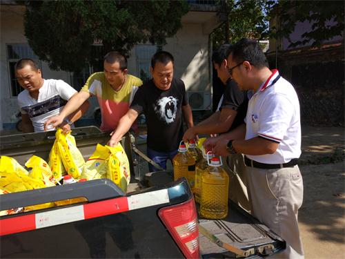 在武城村,致公党员将20袋大米和油送到困难群众手中,其中不乏在此次洪涝中受灾的群众。黄尹丰嘱咐村民要注意防暑降温,有困难及时反映,并嘱咐村委会照顾好困难群众特别是受灾群众的生产和生活。