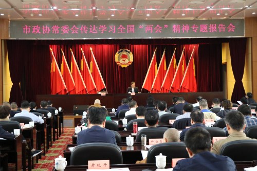 今天上午,政协长沙市第十二届委员会常务委员会第十二次(扩大)会议召开,传达学习全国“两会”精神,全国政协委员、市人大常委会副主任、致公党长沙市委主委王国海重点传达了全国政协十三届一次会议精神,近200人参加了两会精神传达报告会。时代肩负新使命,新时代呼唤新作为,与会人员听完王国海委员两会精神报告会后,一致认为广大政协委员将以全国“两会”精神为指导,更加紧密地团结在以习近平同志为核心的中共中央周围,为全面建设现代化长沙,推进人民政协事业新发展而努力奋斗。