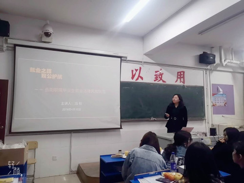 本届致公班已经结束为期一年的实习期,正处在择业与就业的阶段,此次返校为毕业考试前的最后一次班会活动。班会上,致公党岳阳市委市直一支部主委徐冬萍与同学们分享了职业选择案例,并根据自身从业经历与同学们进行了面对面沟通,帮助同学们树立正确的人生观、价值观、就业观。市直二支部党员、湖南碧灏律师事务所律师冯秋作了关于《毕业生就业法律风险防范》的专题讲座,帮助同学们在择业、就业时学会用法律武器维护自身权益,法律专业委员会主任李向欣针对同学们提出的个案问题做作了细心解答。
