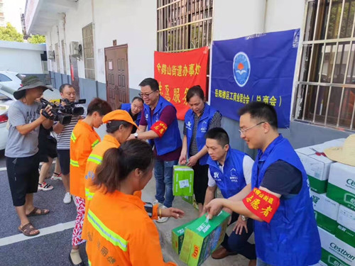 7月26日,致公党员廖志君、杨峰积极组织与参与了由岳阳楼区工商联、金鹗山街道工委、金鹗山商会共同组织的向辛勤工作一线的环卫工人、绿化工人送清凉活动,让一线工人全身心投入工作和愉快的生活中。