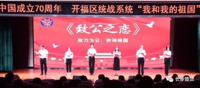 “每当我想起“祖国”这两个字,我的血管里就燃烧着一股股的热血,我的眼里就泛起晶莹的泪花,我的心中就荡漾着温柔的浪波……”2019年9月21日,“我和我的祖国”庆祝新中国成立70周年开福区统战系统诵读比赛在开福一小拉开序幕,开福区统战各界人士组成12支队伍,以讲述、朗诵、情景剧、音诗画、合唱等原创节目形式,回顾建党、建国及新中国成立以来,统战人士历经的峥嵘岁月,歌颂新中国取得的辉煌成就,抒发满腔的爱国情怀。致公党长沙市委开福区工委组织党员积极参加,代表几代致公人,为祖国母亲献上恋歌一首。