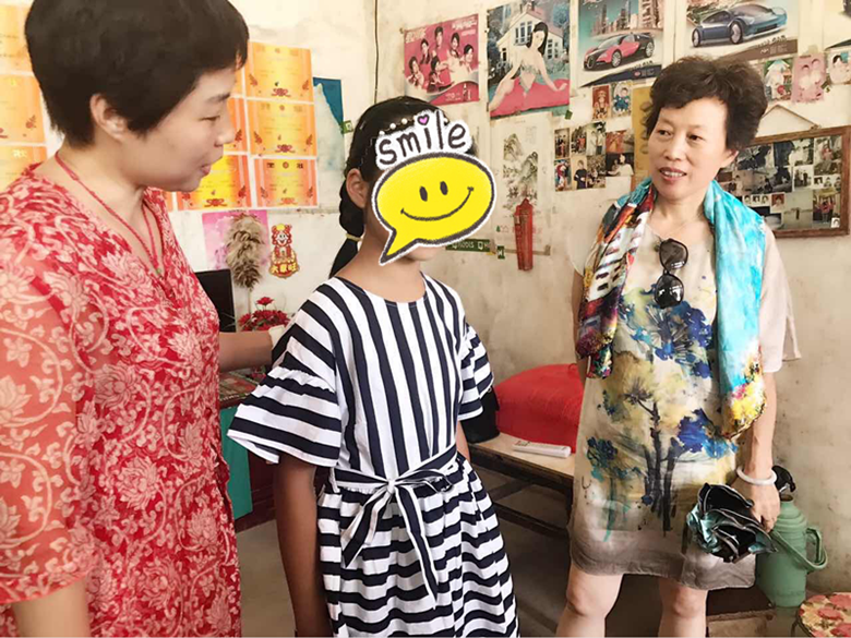 后来,蒋晓颖把萌萌的遭遇在支部会议上和云龙支部的其他党员们做了交流,让她没想到的是,支部的党员们听说了萌萌的懂事、乖巧,竟都争当起了萌萌的“致公爸爸”、“致公妈妈”。大家筹划活动,准备礼品,并在2017年7月21日上午,由蒋蔚、杜书菊、蒋晓颖、苏鹏、秦红文等作为“爸爸”、“妈妈”们的代表,在室外温度接近40摄氏度的酷暑中,带着大米、面、食用油、衣服、书包和水果等,驱车前往萌萌的家,希望亲眼见证萌萌的成长。