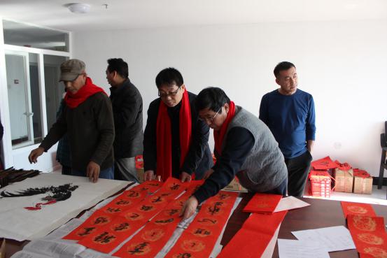 一行人给养老院的老人们送去鸡蛋、食用油、内衣套装、糖果等年货。书画家们在养老院里为老人们现场挥毫泼墨书撰写了春联、福字,还特意绘画了一幅雄鸡表达对老人们鸡年安康的祝福,受到了老人们的热烈欢迎;沈阳艺剪堂的美发师还为20多位老人理发。活动期间,慰问团同老人们座谈交流,慰问团祝老人们健康长寿,整个慰问活动充满了温馨祥和气氛。