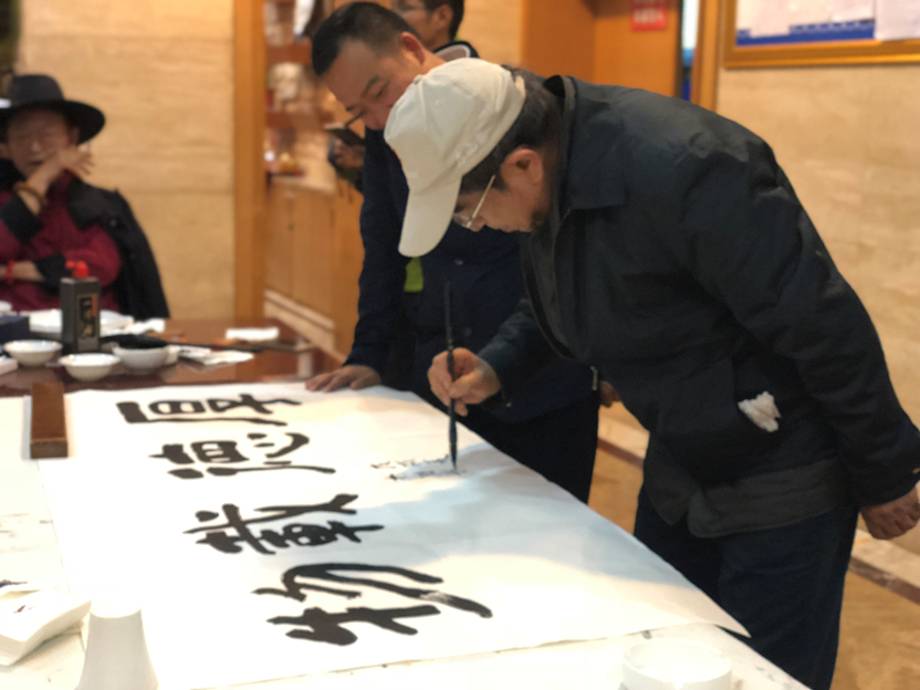 杨邦杰和艺术家一行在笔会交流中