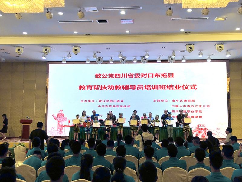 由致公党四川省委、中共布拖县委统战部主办,成都金牛区教育局、中国人寿青白江支公司、四川科技职业技术学院、龙腾教育拓展基地支持的对口布拖县第二期教育帮扶培训活动和夏令营活动14日在成都圆满落幕。出席本次培训结业典礼的有致公党四川省委专职副主委肖剑书,省委统战部党派处副处长黄涛,致公党中央委员、致公党四川委员,四川科技职业学院董事长、副院长包国容,金牛区教育局调研员刘国模,中国人寿青白江支公司总经理车慧,龙腾教育拓展基地张晓坤校长,金牛区教育局学校安全管理办公室主任付晞,致公党四川省委办公室主任杨成。