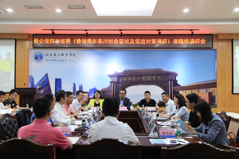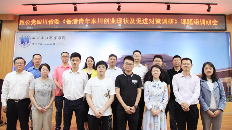 5月24日,为进一步推动香港青年在川创新创业,致公党四川省委2019年度二类课题《香港青年来川创业现状及促进对策调研》课题组赴四川长江职业学院开展专题调研,并进行座谈交流。致公党四川省委宣传处副处长敬筠,课题负责人、省政协委员、致公党四川省委思想宣传与理论研究委员会副主任高善峰,致公党中央青年工作委员会委员、致公党四川省委科教专委会副主任、成都市政协委员、四川大学生物治疗国家重点实验室教授雷鹏等一行十余人参加调研。