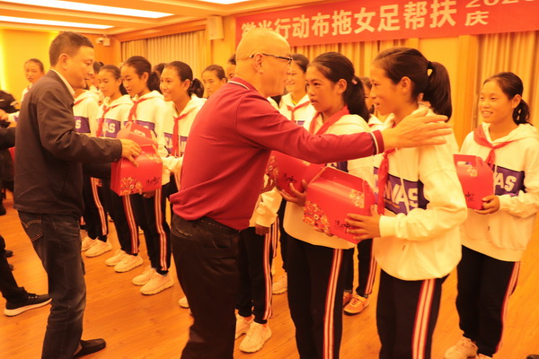 余夔与孩子们一起聊天,关心并询问了女足队员在蓉的学习和训练情况。“独在异乡为异客,每逢佳节倍思亲”,他积极疏解小队员们的思乡之情并勉励大家珍惜机会,通过认真学习、刻苦训练,努力提高能力素养,争取圆满完成阶段性培训目标。余夔表示,汇聚点滴善意点亮微光,统筹人力物力助力教育,对口帮扶,我们从未止步。