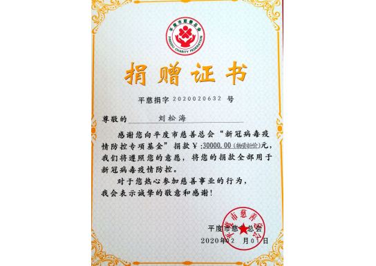 他是这样说的,也是这样做的。新冠肺炎疫情爆发以来,刘松海同志通过各种方式支援疫情防控阻击战。