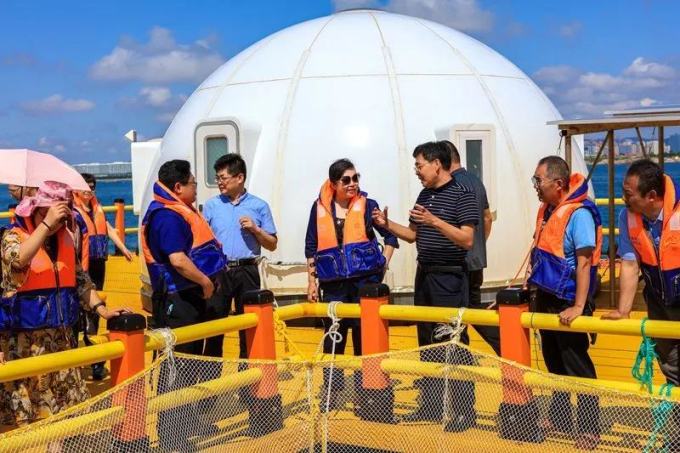 调研组实地考察了国家级海洋牧场、“农业部水产健康养殖示范场”、全国休闲渔业示范基地青岛鲁海丰海洋牧场。