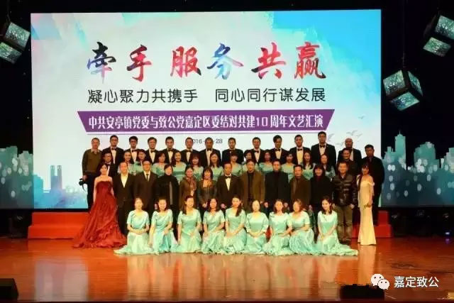 12月28日下午,由中共上海安亭镇党委与致公党上海嘉定区委共同主办的以“牵手、服务、共赢”为主题的结对共建10周年文艺汇演在安亭镇举行。致公党上海市委专职副主委马进、上海嘉定区政协副主席陈技、中共嘉定区委统战部副部长、区侨联主席邓惠娟、致公党嘉定区委主委秦高荣、中共安亭镇党委副书记童伟跃、中共嘉定区人社局党委副书记李倩以及致公党上海市委有关部室负责人等出席活动。致公党嘉定区委党员代表及安亭镇各界人士代表欢聚一堂,共襄盛典。