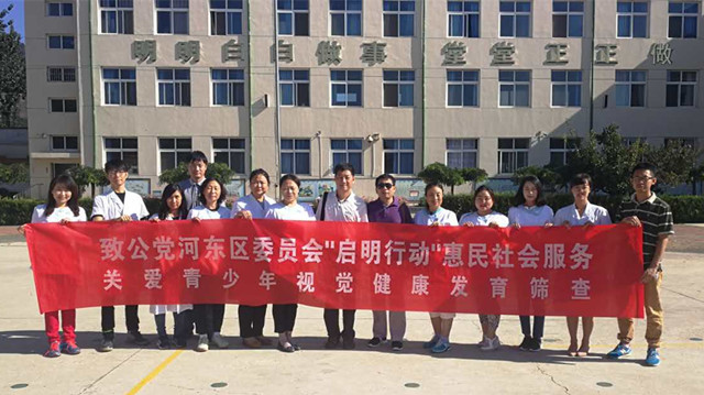 2017年是致公党天津市河东区委会开展“启明行动”关爱青少年视觉健康义诊活动的第二年,9月11日,致公党天津市河东区委会社会服务专委会和医药卫生支部等部分党员赴蓟州区孙各庄满族乡开展“启明行动”关爱青少年视觉健康发育筛查诊治活动。