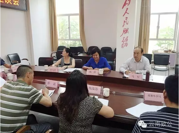 杨萍谈到,为响应云南省"十三五规划"中将云南建设成为面向南亚东南亚的辐射中心这一目标任务,致公党云南省委结合实际,设立了国际大通道物流情况调研课题,由主要领导牵头组成课题组,对昆曼大通道的物流情况进行调研。并对中共勐腊县委统战部及各部门表示感谢。