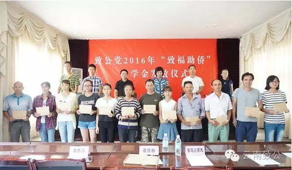 9月6日,受致公党中央社会服务部、致福慈善基金会委托,致公党云南省委秘书长杨萍率队到玉溪市元江县甘庄社区(原华侨农场)颁发2016年度"致福助侨奖学金",共向12名优秀贫困的高考学子发放共计5万元的奖学金。