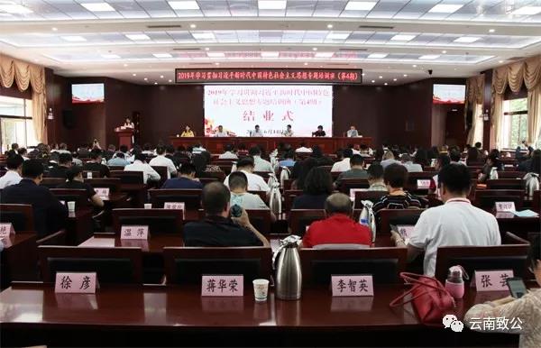 6月14日下午,为期5天的2019年学习贯彻习近平新时代中国特色社会主义思想专题培训班(第4期)在省社会主义学院圆满结业。省社会主义学院副院长陈友康,中共云南省委统战部党派处处长郜国志分别到会指导并作总结讲话,致公党云南省委副巡视员、秘书长杨萍出席结业式。省社会主义学院教务处处长魏贵华主持结业式。