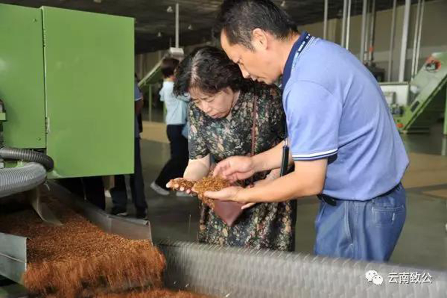 周丽娅(左一)在楚雄卷烟厂了解生产情况