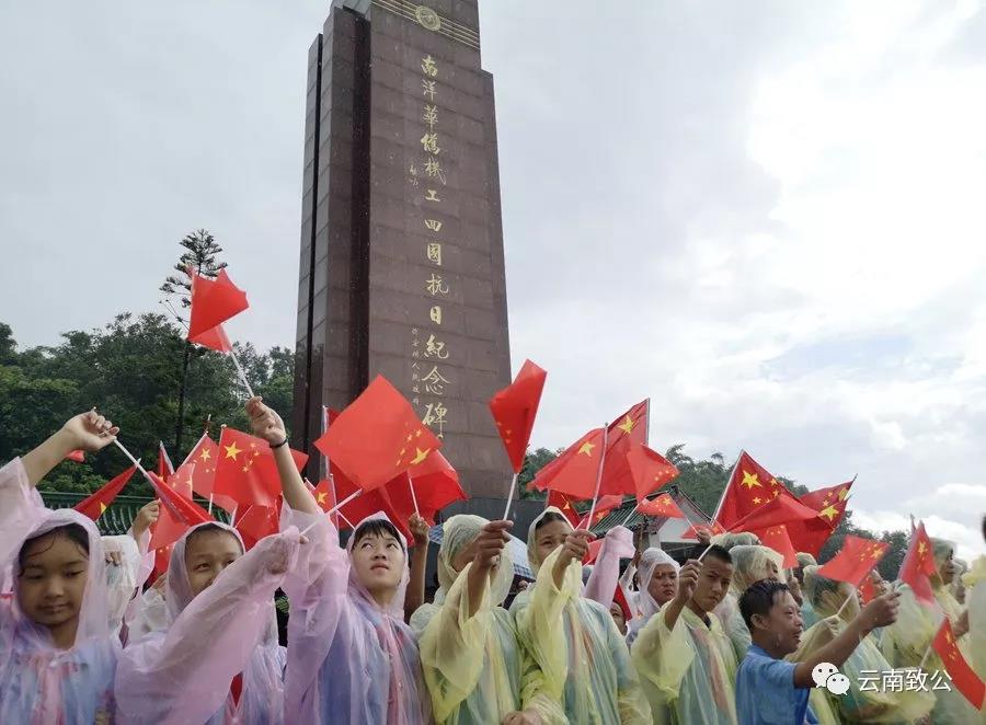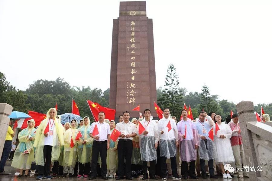 初秋的畹町南洋华侨机工回国抗战纪念公园,下着绵绵细雨。一大早,来自江西、福建、广西、海南、四川、广东等全国各地的南侨机工眷属、干部群众和少先队员代表200多人聚集在这里,向纪念碑敬献花蓝、静默致哀,共同缅怀英烈,回顾那段难忘的历史。