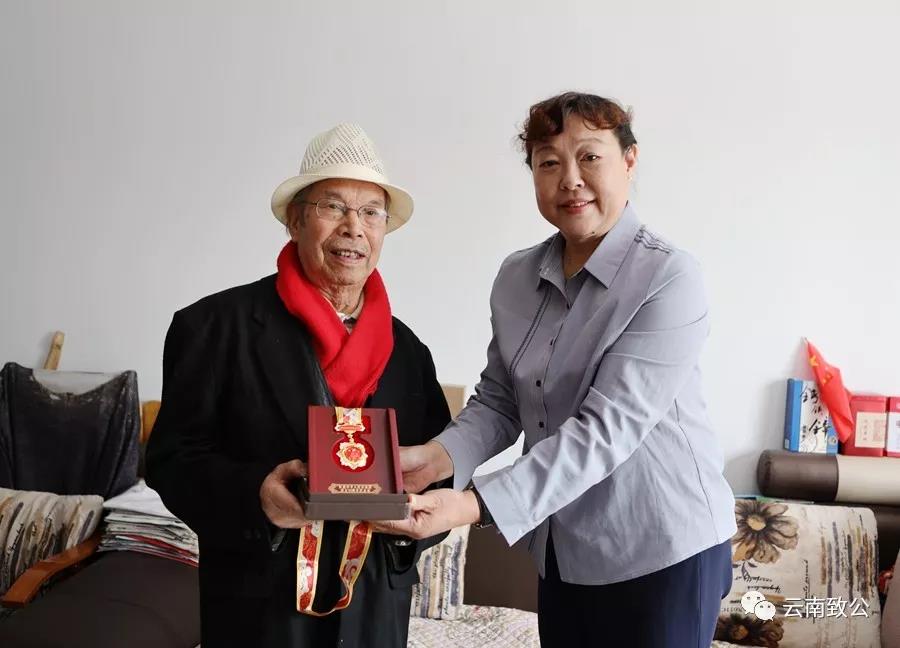 今年是中华人民共和国成立70周年,在国庆节即将到来之际,9月23日至24日,受致公党中央委托,致公党云南省委专职副主委刘卫红,二级巡视员、秘书长杨萍分别到大理、昆明为我省致公党员文昇、栗兆翔两位老同志送去中共中央、国务院、中央军委颁发的“庆祝中华人民共和国成立70周年”纪念章,带去了本党中央的崇高敬意和美好祝福。