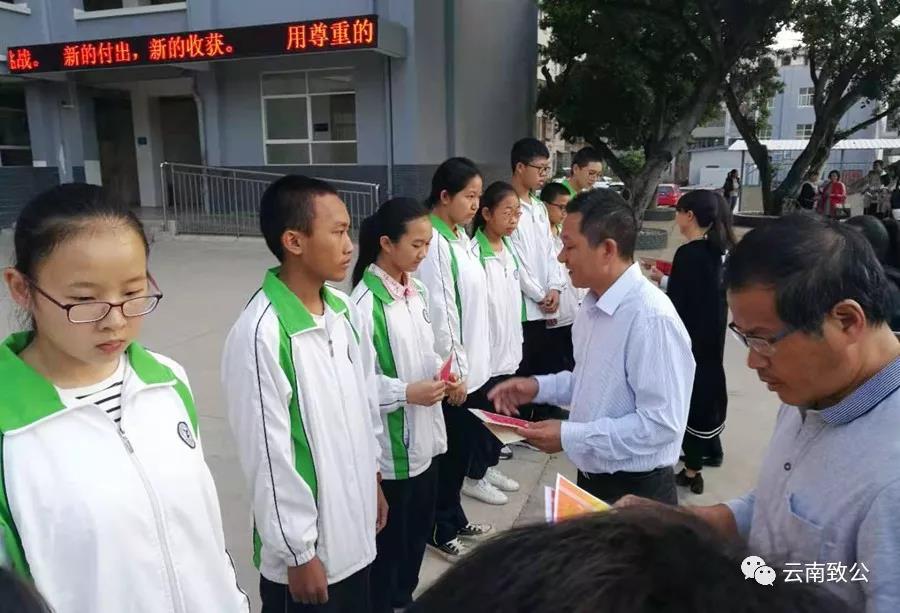 教育扶贫是阻断贫困代际传递的治本之策,致公党开远市基层委成立“致远奖学金”以来,始终以鼓家庭困难学生在校期间奋发向上、刻苦学习为目的,坚持公平公开原则,对八年级学习进步最大的十位学生一次性给与每人500元的奖励,帮助他们克服生活中的困难。虽然补助的金额不高,但是他旨在教会学生面对生活的艰辛,面对困难,只要不放弃学习,就一定有收获。