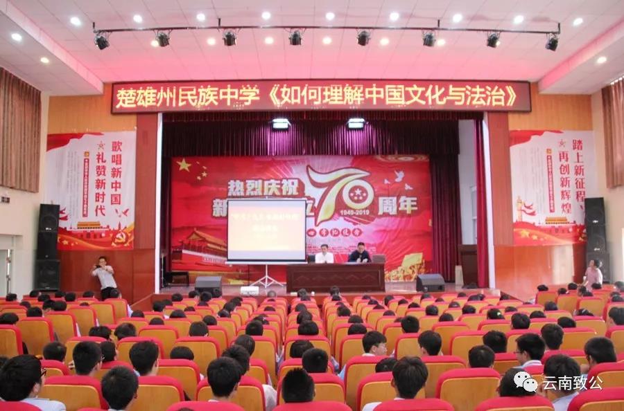 10月21日,“学习十九大 弘扬好传统”致公讲堂在楚雄州民族中学开讲。致公党中央监督委员会委员、云南省人大常委会法制工作委员会副主任、致公党云南省委监督委员会主任田成有,受邀开展了一场题为“如何理解中国文化与法治”,拓展学生素质、提升人文素养和法治精神的专题讲座。致公党楚雄市基层委副主委李世平主持讲座。
