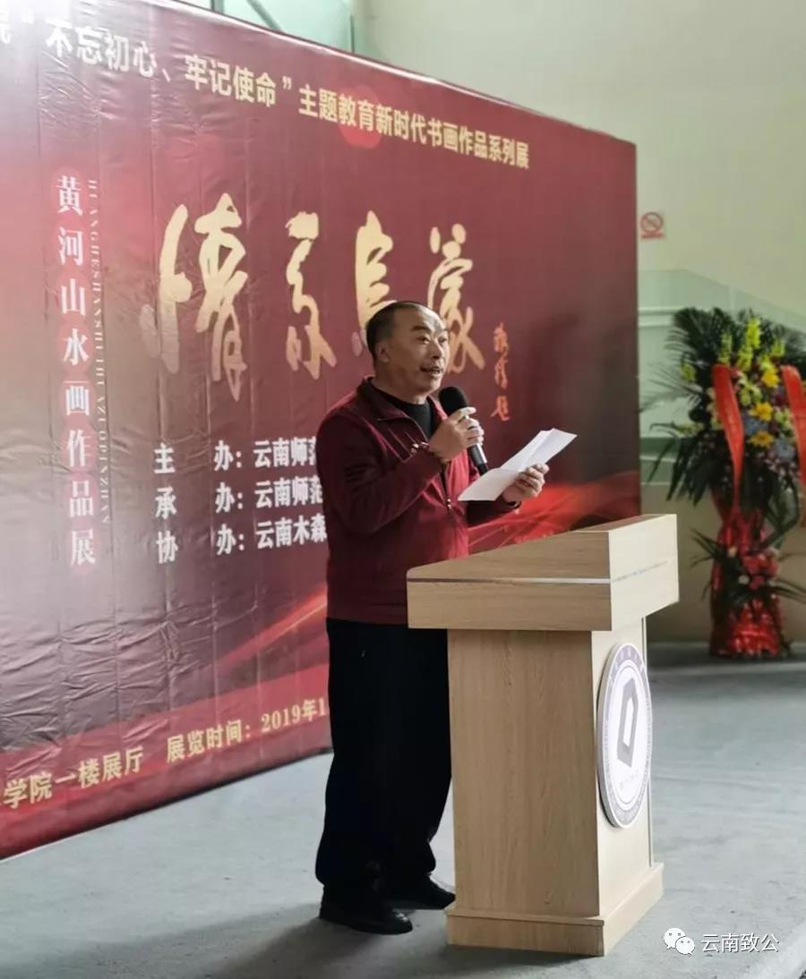 作为云师大美术学院“不忘初心、牢记使命”主题教育新时代书画系列作品展首展,本次展览共展出黄河70件作品,画作内容均与乌蒙山水相关,以此庆祝中华人民共和国成立70周年,并表达对家乡的热爱。