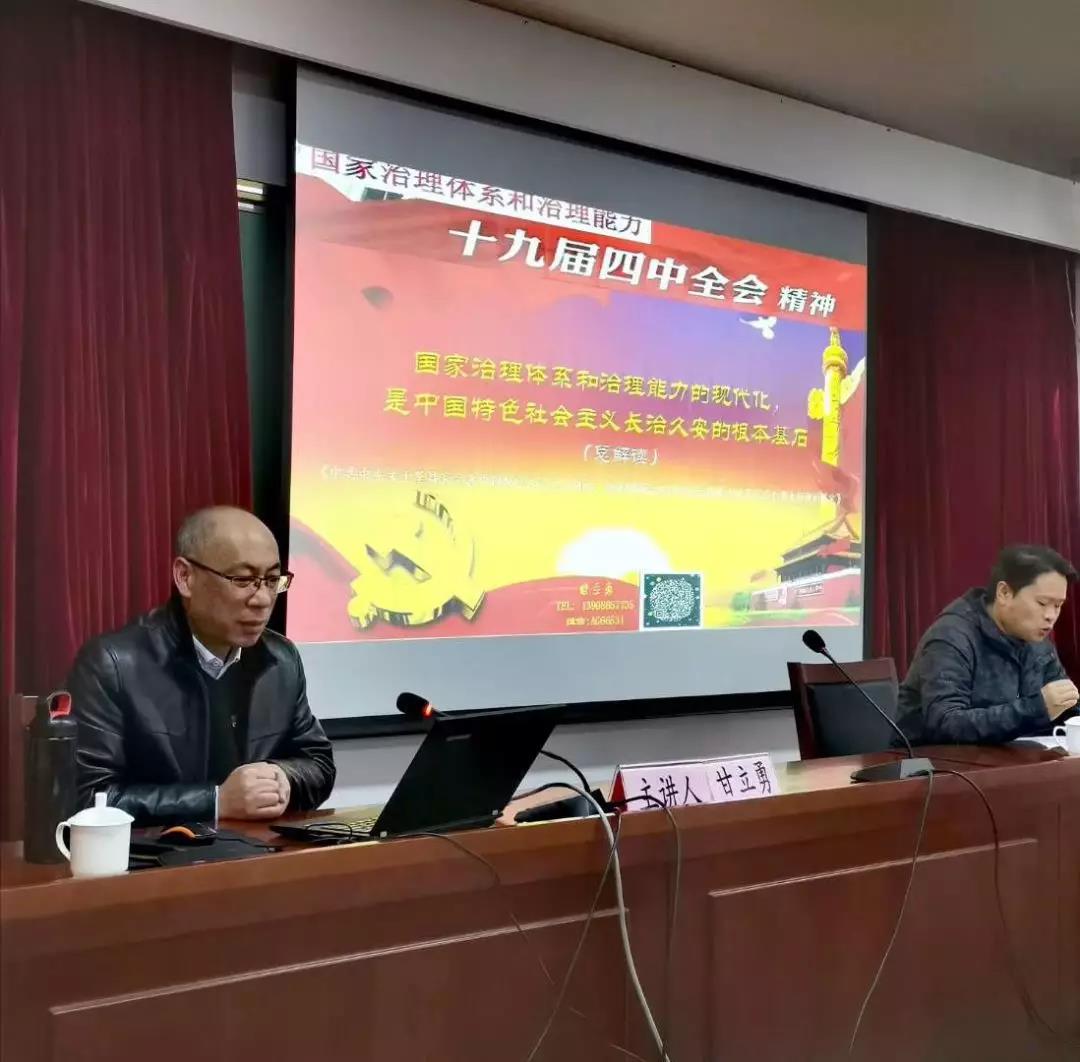 甘立勇副教授就《国家治理体系和治理能力的现代化是中国特色社会主义长治久安的根本基石——十九届四中全会精神总解读》进行了主题讲述。