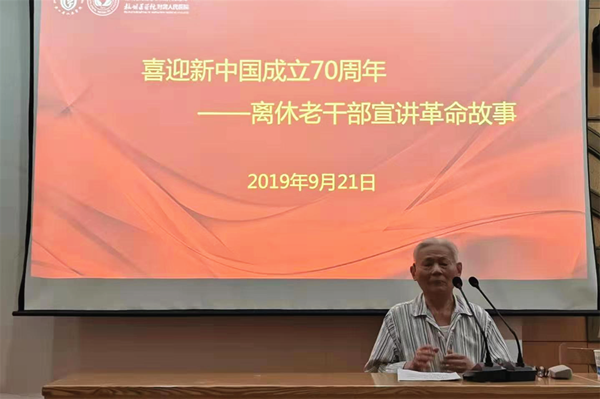 活动邀请离休老干部(原杭州市民政局局长)、老红军刘德桂同志宣讲革命故事,为大家带来一堂生动的爱国主义教育课。刘老半生戎马,参加过抗日战争,江阴保卫战、淮海战役、济南战役、渡江战役等多次重要战役,他从抗日战争讲到解放战争,从土地改革讲到改革开放,忆往事、话初心,令台下党员们感慨万千。大家深切感受到今天的幸福生活来之不易,要倍加珍惜和爱护,传承光荣传统,坚定理想信念,以勇于担当的精神和求真务实的态度积极开展好各项工作,以优异的成绩向新中国70周年献礼。