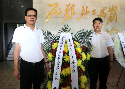 支部主委刘兴华(右)向烈士纪念碑敬献花篮