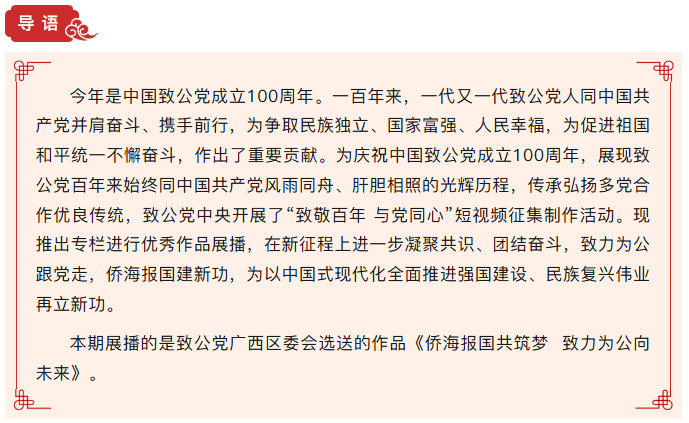 “致敬百年 与党同心——庆祝中国致公党成立100周年”优秀短视频作品展播(九)